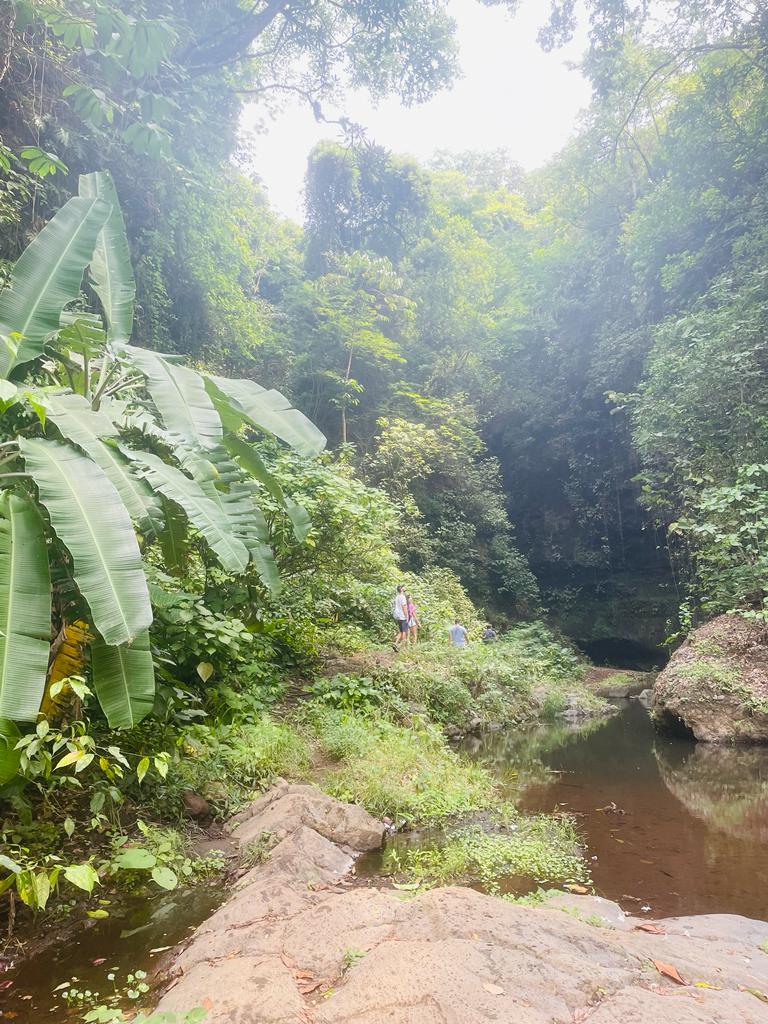 On entend le bruit de l’eau de plus en plus près, la végétation s’épaissit, nous y arrivons! Le cour d’eau est à nos pieds, nous le suivons en grimpant sur des rochers, et là c’est le choc: la cascade est presque vide !! Notre guide, amusé, nous dit d’avancer juste quelques mètres supplémentaires et de tourner la tête à droite: elle est LÀ la vraie cascade !